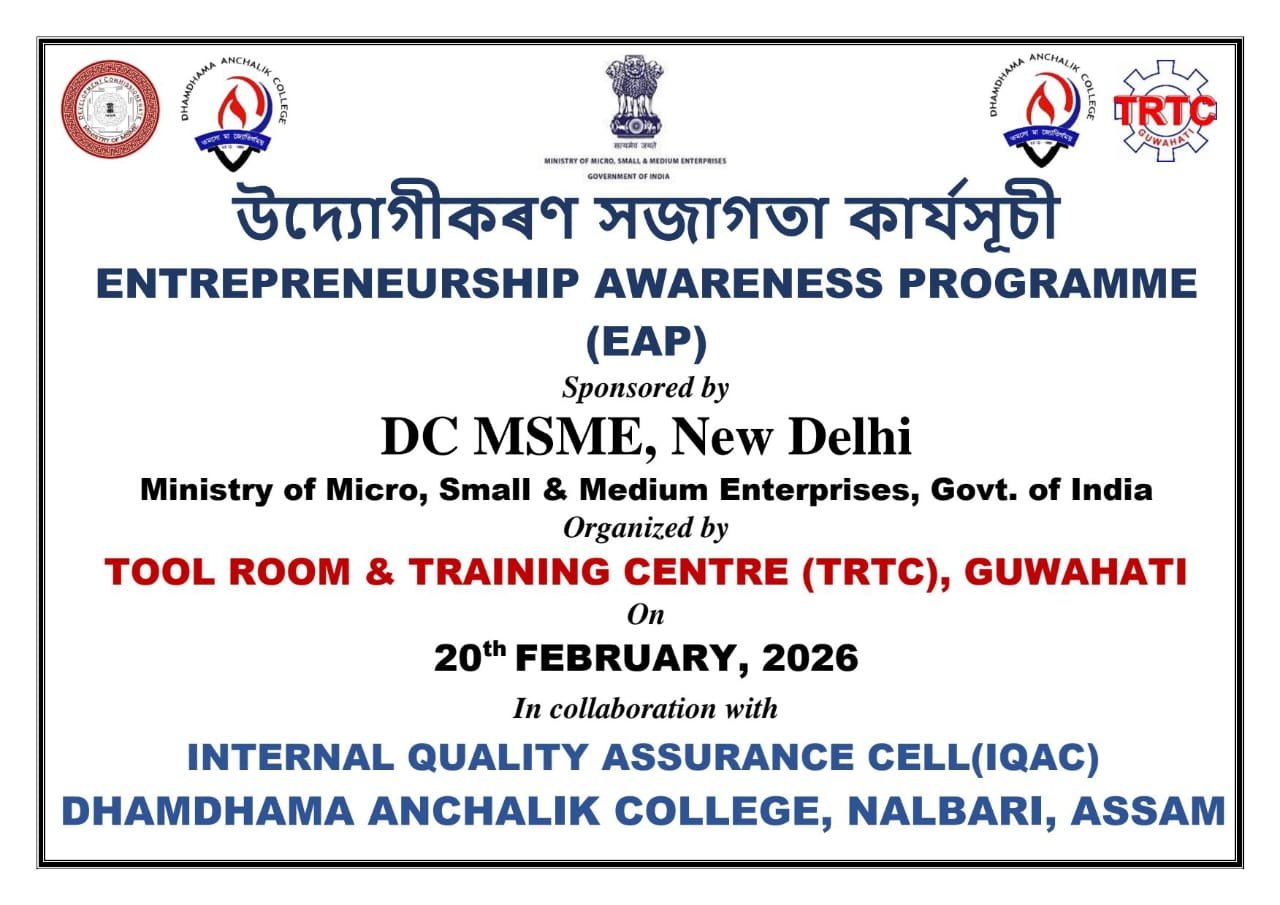ধমধমা আঞ্চলিক কলেজত নলবাৰী জিলা সাহিত্য সভাৰ অষ্টম বাৰ্ষিক অধিবেশন -২৫ জানুৱাৰী, ২০২৬