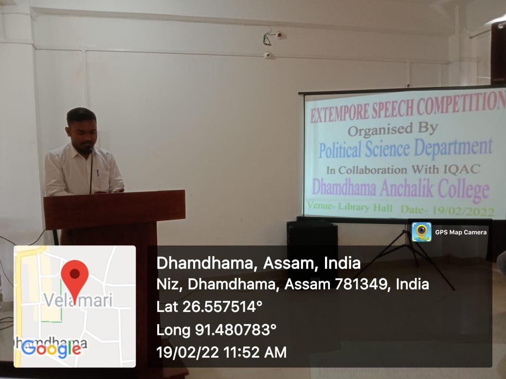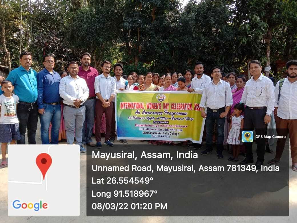 International Women Day Celebration 2022 by the Department of Political Science In collaboration with NSS Unit Dhamdhama Anchalik college.